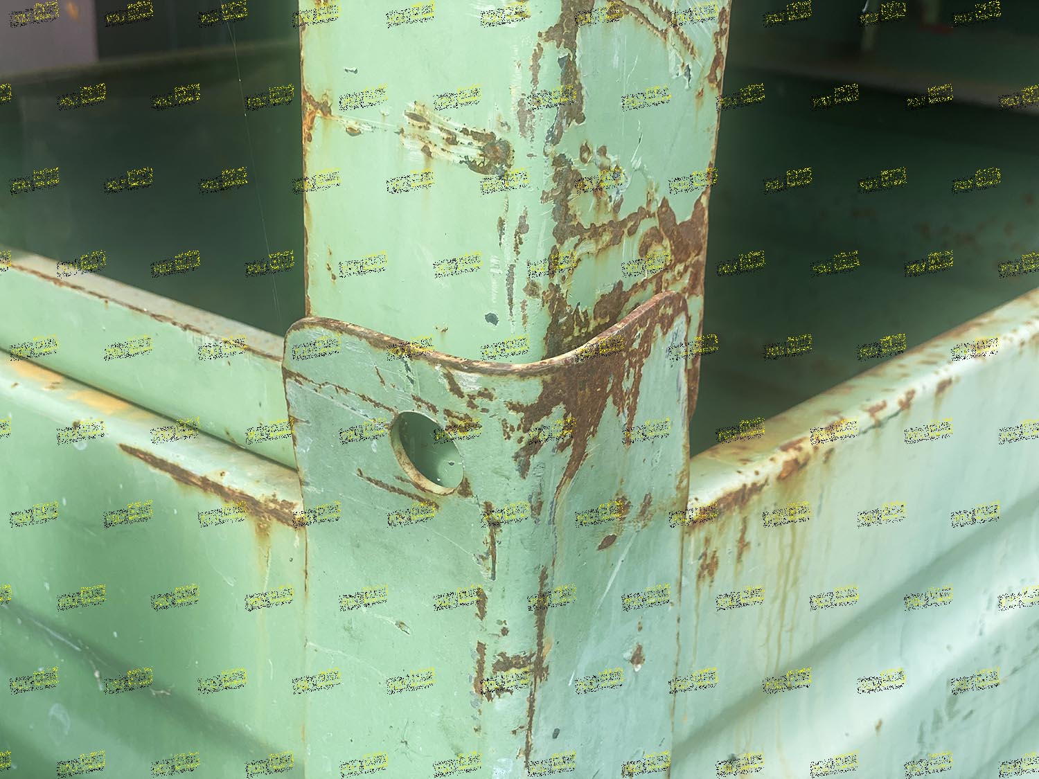 Contenitori casse industriali in lamiera grecata versione piccola serie pesante. Sono impilabili ad incastro, hanno i fori di aggancio per sollevamento e la slitta sul lato corto.