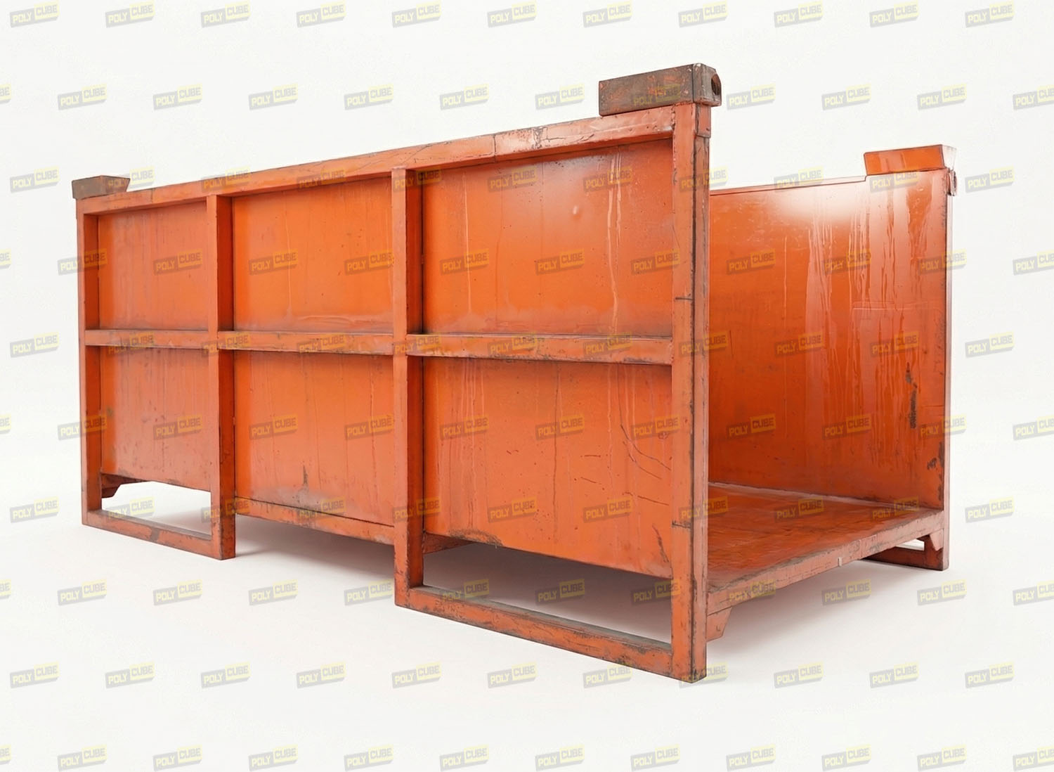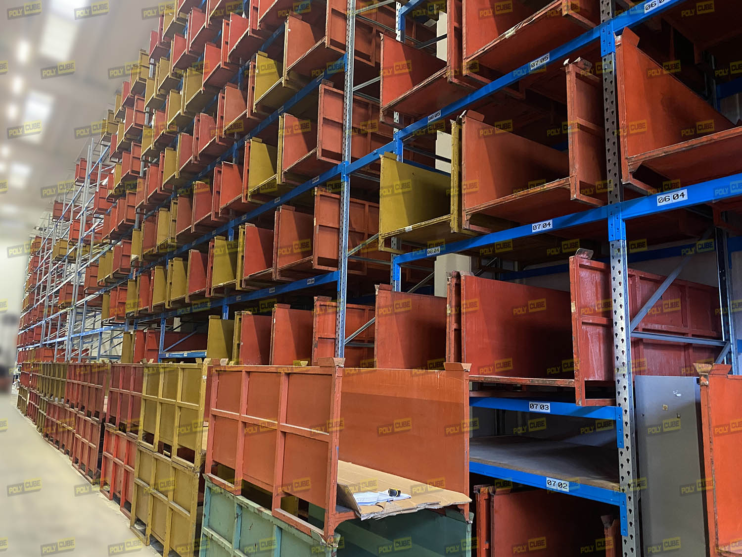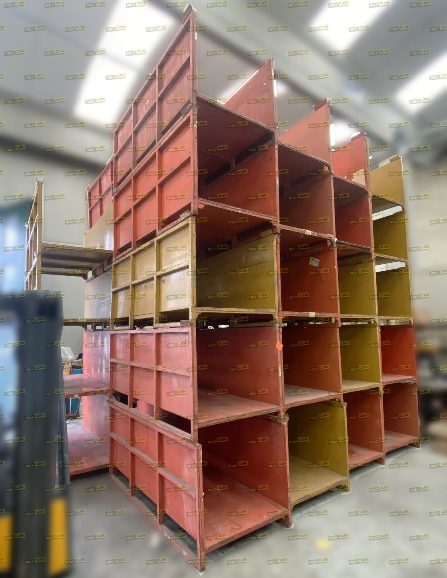 Contenitori o pedane porta rotoli in acciaio verniciato, colori disponibili: arancio, senape o verde. Sono, impilabili ad incastro, costruiti con tubolare d’acciaio sezione quadra mm 40×40, le pareti ed il fondo sono in lamiera, hanno la sottostruttura di rinforzo e le slitte anti ribaltamento.  Sono utilizzati per lo stoccaggio di profili, barre, rotoli, pezze di tessuto e tanto altro ancora. Lotto di BUONA QUALITA’