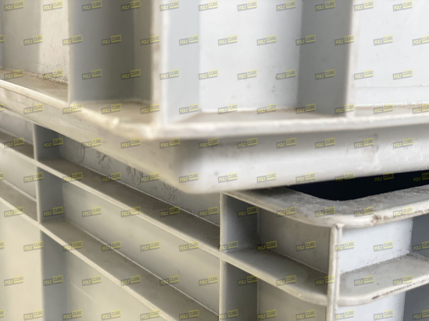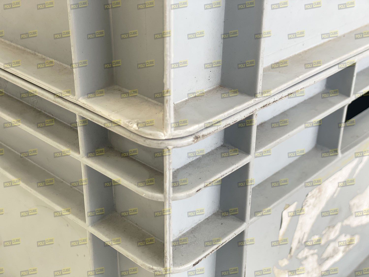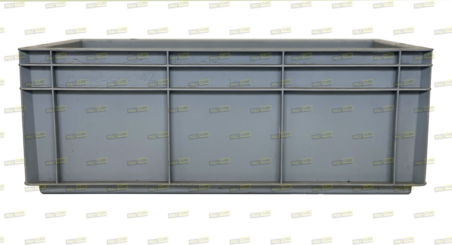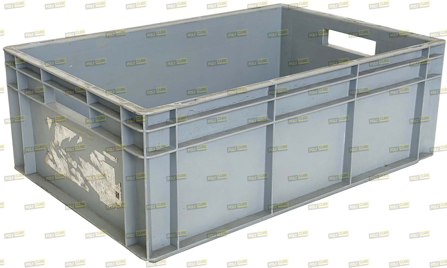 Cassette in Plastica usate professionali marca Plastic Werke GmbH modello newbox42, colore grigio, formato Euro Norma cm 60×40 per l’ottimizzazione della logistica. Sono accatastabili ad incastro, hanno il fondo e le pareti interne lisce, hanno le maniglie aperte sui lati corti per la presa manuale. All’esterno sono presenti nervature per garantirne robustezza e stabilità anche se impilate a pieno carico.