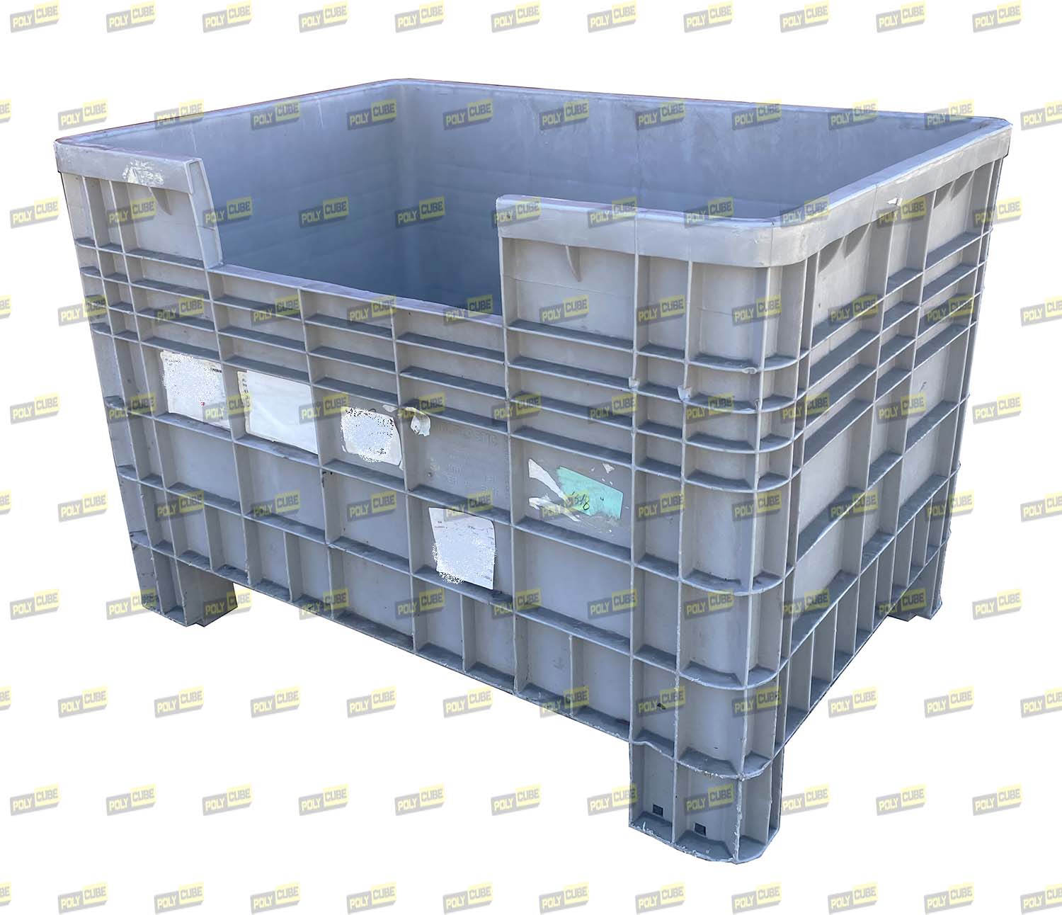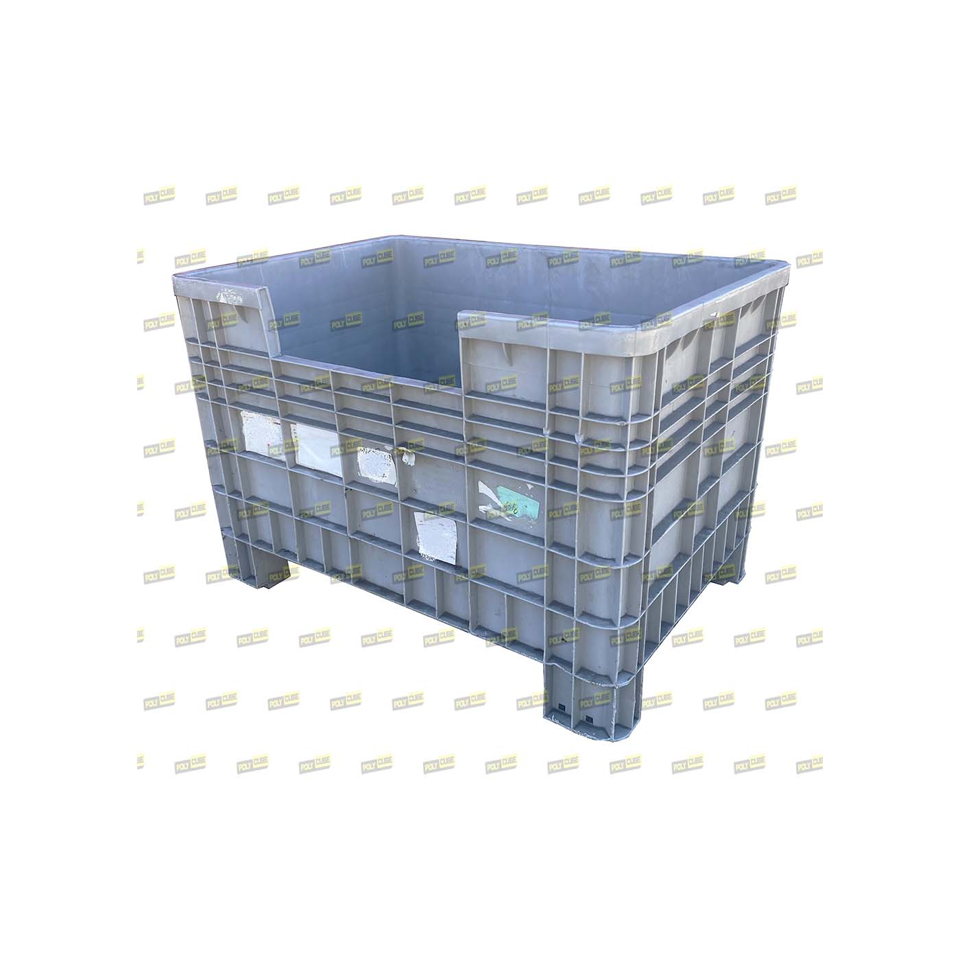 Casse industriali usate in polietilene HD. Questo modello ha l’aperura a filo parete senza anta sul lato lungo che permette il prelievo del materiale anche quando accatastate; particolarmente adatte allo stoccaggio e movimentazione di componentistica in generale, filati, ecc. ecc. Hanno i piedi, le pareti ed il fondo chiusi, sono rinforzate con nervature e sono accatastabili ad incastro